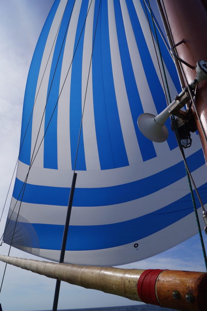 Schon waren unsere zwei Wochen fast um. Unsere Freunde mussten uns bald verlassen und so folgte noch der lange Schlag nach Douarnenez. Schließlich, wer hätte das gedacht, haben wir unser neues Segel, einen zweite Hand Spinnaker ausprobiert. Mit Rauschefahrt haben wir so bei leichtem Wind das Segeln genossen. Und – der Spi ist eigentlich ein Gennaker. Wir werden ihn zukünftig etwas anders fahren. Seine Vortriebseigenschaften haben uns trotzdem schon ein zufriedenes Lächeln ins Gesicht gezaubert. Auf zu den nächsten Abenteuern!