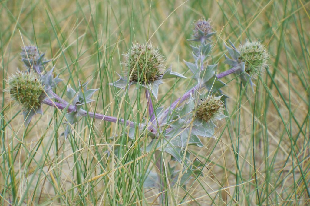 Stranddistel in Blüte Sandstrohblume Meeresnarzisse