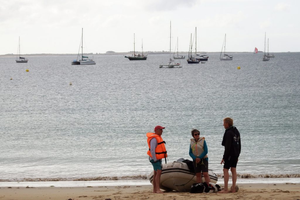 Der Wind für die Überfahrt zur Île de Groix war früh morgens angesagt. Schon um 5 Uhr im Dunkeln am 30. Juli hieß es also Aufstehen, Segelkleider ab, Kaffee und los. Mit nordöstlichen Winden wogten wir hinüber und bekamen den Platz vorm Seenotkreuzer an der Fischereipier. Um 10:00 Uhr im nächsten Hafen zu sein kommt nicht so oft vor. Unsere Außenborder-Spezialisten verbrachten ihre Zeit mit Bastelei, denn das Ding hatte uns schon mehrmals ohne Vorwarnung im Stich gelassen. Die Ursachenanalyse zeitigte aber noch immer keinen echten Erfolg. Mysteriös…